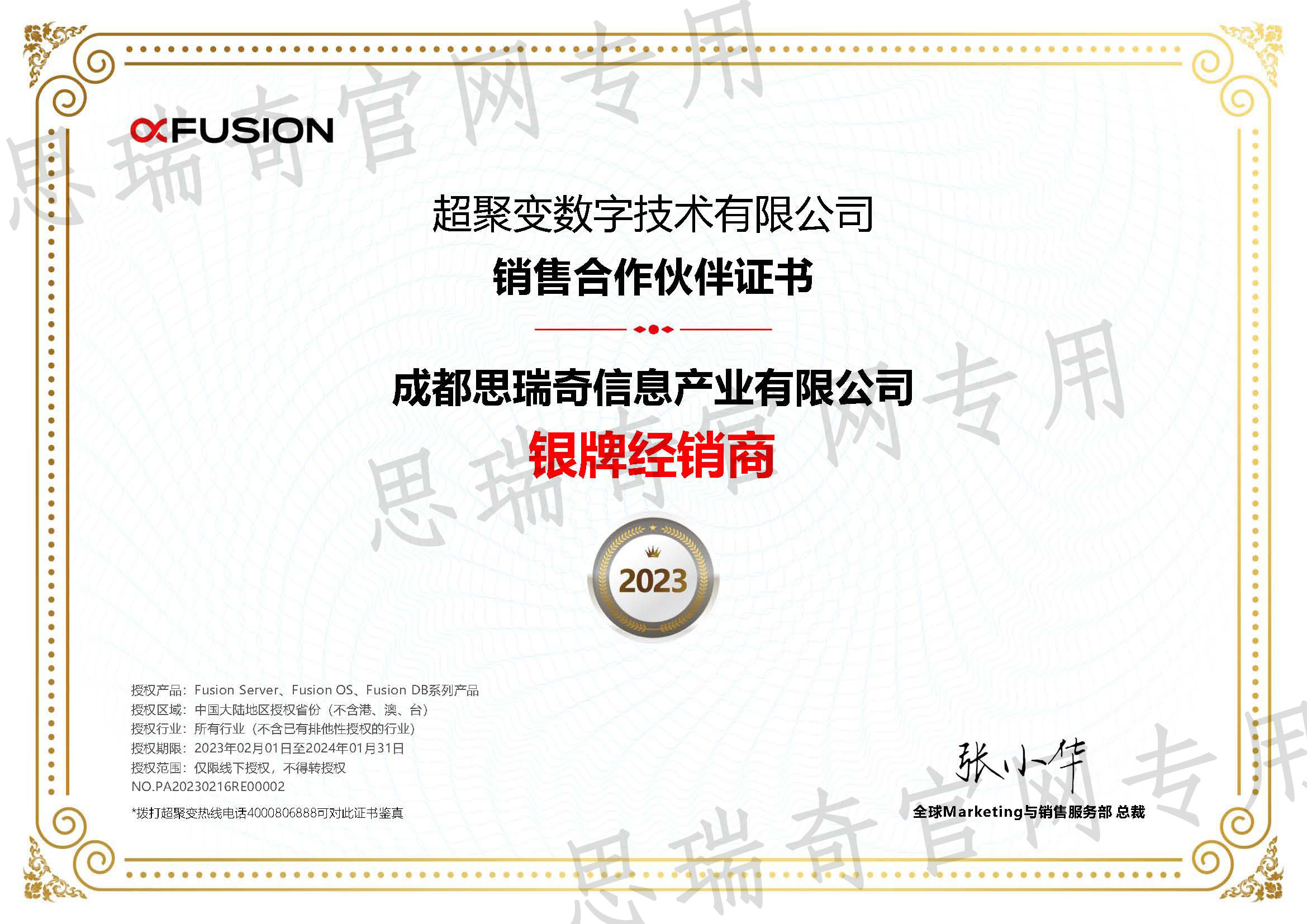 分类: 公司资质, 公司资质更新作者:siruiqi2023年5月11日文章导航上一页上一文章:高新技术企业证书下一页下一文章:华为IT(存储&计算)认证服务伙伴三钻认证服务商Related posts人大金仓代理商授权书2023年5月11日麒麟软件金牌代理商授权证书2023年5月11日南大通用代理商授权书金牌代理商2023年5月11日联想企业科技集团合作伙伴证书2023年5月11日浪商增值渠道证书2023年5月11日华为云云经销商2023年5月11日